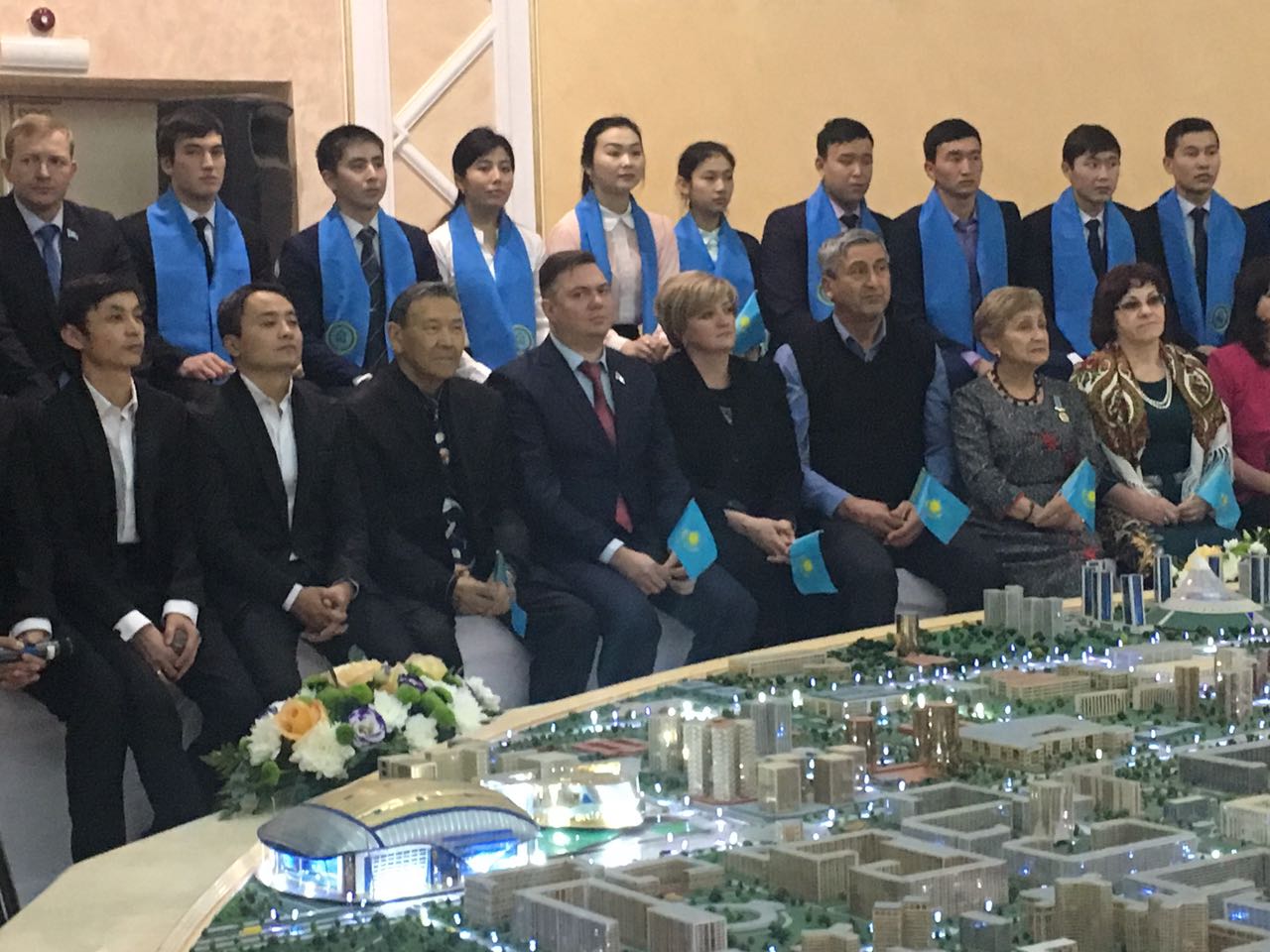 После экскурсии в круглом зале, в теплой дружеской атмосфере прошел киновечер. Аким области выступил с приветственной речью, в которой отметил:
