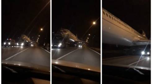 Видео необычного зрелища прислал в редакцию Tengrinews.kz один из читателей. На кадрах, снятых недалеко от Караганды, пассажирский самолет перевозят прямо по автомобильной дороге.