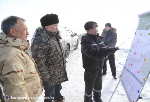 Аким Карагандинской области Нурмухамбет Абдибеков проверил, как идет подготовка к весеннему паводку в Каркаралинском районе.