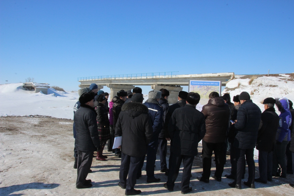 Наряду с этим, был проверен ход работы по вырубке тальника по руслу реки Нура. Произведен осмотр демонтированного моста через реку Нура, пострадавшего в паводковый период 2015 года на автодороге Караганда-Тогызкудук-Ботакара, где был проведен замер льда и уровня воды в реке Нура.