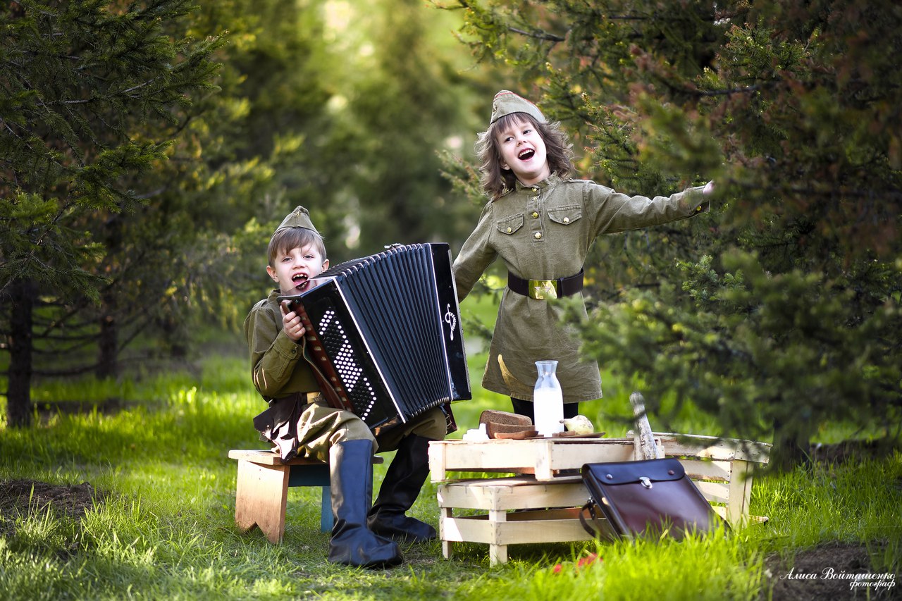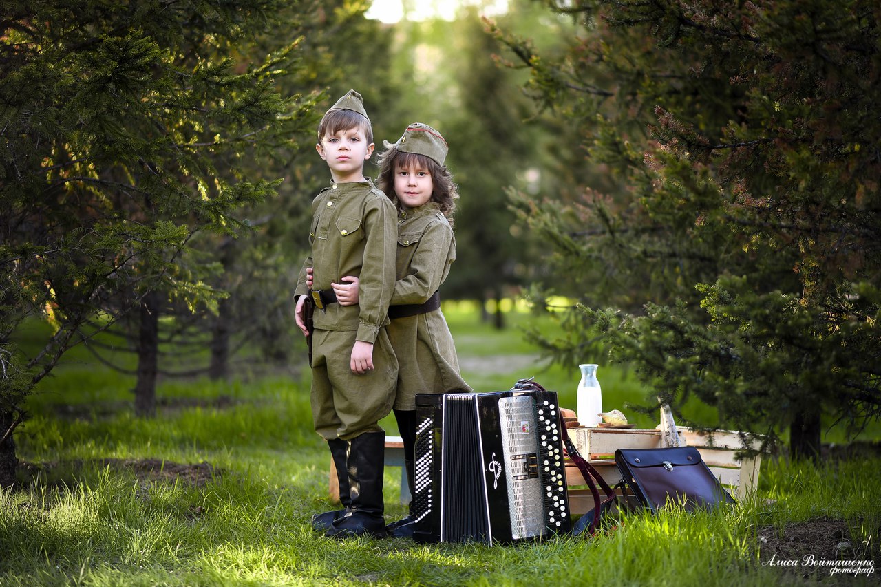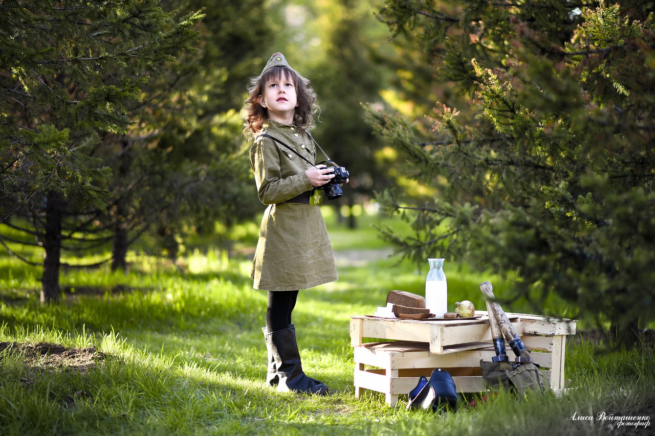 Разместив пост о проведенной фотосессии в соцсетях, я попала в поле зрения российского интернет-издания Afisha Daily, которое готовило материал к предстоящему Дню Победы. Мне написала девушка, которая попросила ответить на несколько вопросов. Дело в том, что сегодня, оказывается, широко обсуждается тема того, что отношение ко Дню Победы стало несколько циничным. Я говорю «оказывается» потому, что в моем окружении нет людей, которые делают нечто из ряда вон выходящее по отношению к этому дню. Корреспондент попросила высказать своё мнение о том, что сегодня проводятся фотосессии с участием детей в военной форме. Чаще всего фотосессии носят коммерческий характер: фотографы приглашают в студии, проводят подобные акции в детских садах. И я задумалась…