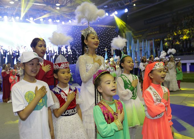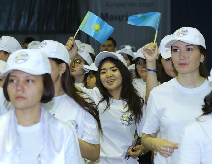 2 июня в карагандинском спорткомплексе «Жастар» прошел форум «Ұлы Дала Елінің рәміздері жасасын!» с участием акима области, посвященный 25-летию государственных символов Казахстана.
