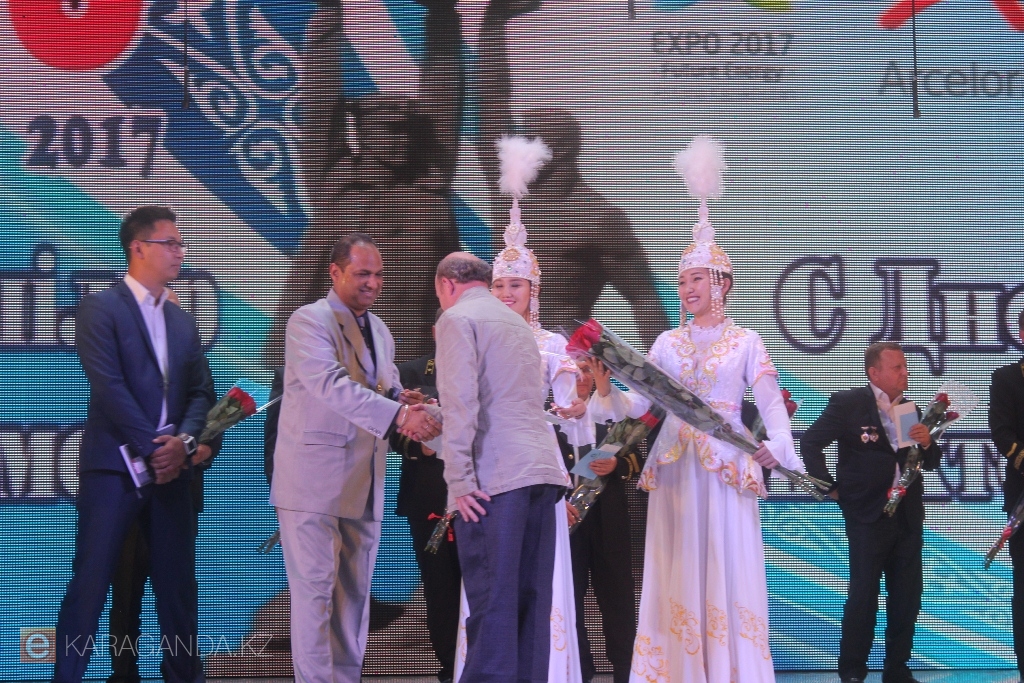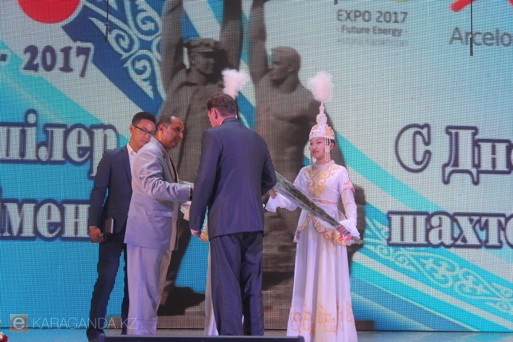 С праздничным событием присутствующих в зале поздравил аким Карагандинской области Ерлан Кошанов. Он подчеркнул выдающуюся роль шахтеров в развитии угольной промышленности карагандинского региона и страны в целом. В своем выступлении глава региона отметил, что Караганда является городом больших шахтерских побед.