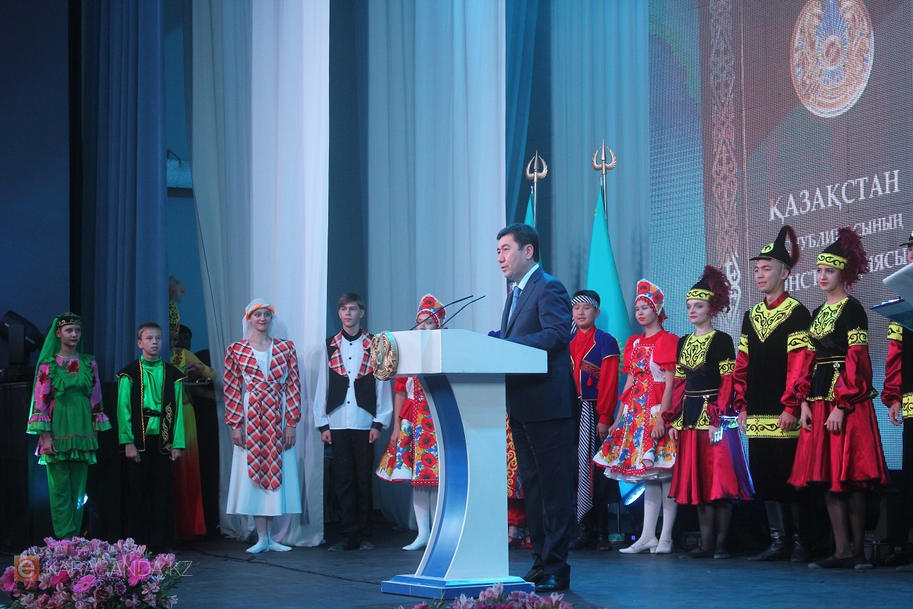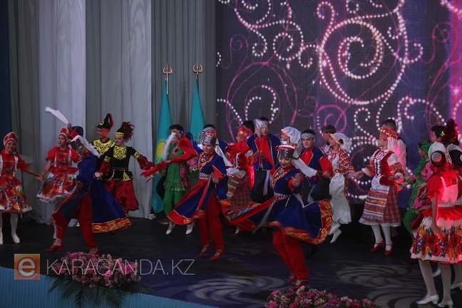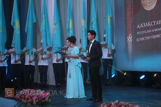 Торжественное мероприятие наглядно продемонстрировало многогранность нашей Республики. На сцену Дома Дружбы для поздравления выходили представители различных профессий и этносов. Далее аким Карагандинской области Ерлан Кошанов поздравил всех собравшихся с Днем Конституции и отметил, что основной закон - это не только юридический документ, это фундамент Независимости.