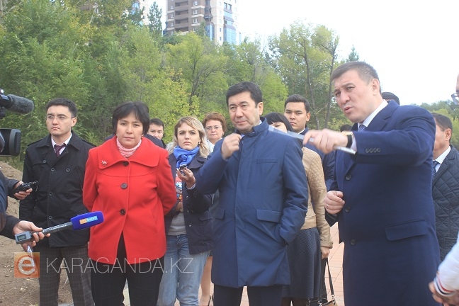 13 сентября аким Карагандинской области Ерлан Кошанов проверил качество ремонтных и строительных работ автодорог, детских площадок, Центрального парка и скверов, расположенных в районе имени Казыбек би.