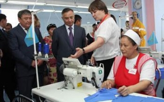 После осмотра места строительства железной дороги аким области принял участие в открытии швейной фабрики ТОО «Ютария Ltd».