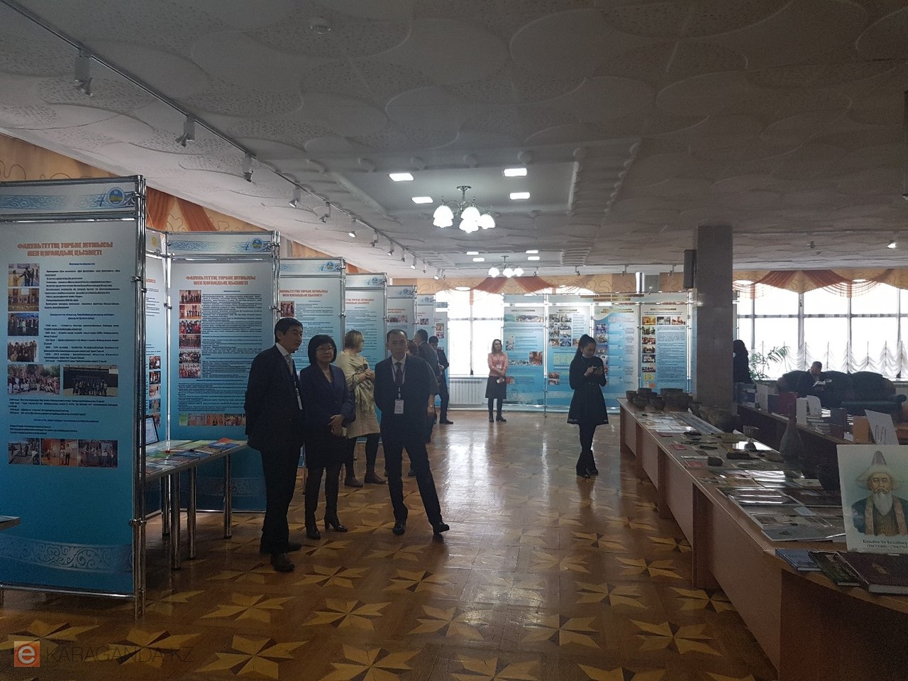 Мероприятие началось рано утром с возложения цветов к памятнику Казыбек би, а уже в девять часов участники конференции побывли на выставке достижений КарГУ, в рамках которой состоялась презентация монографии «Қаз дауысты Қазыбек би және оның тарихи заманы», автором которой стали Максат Алпысбес и Темиргали Аршабеков.
