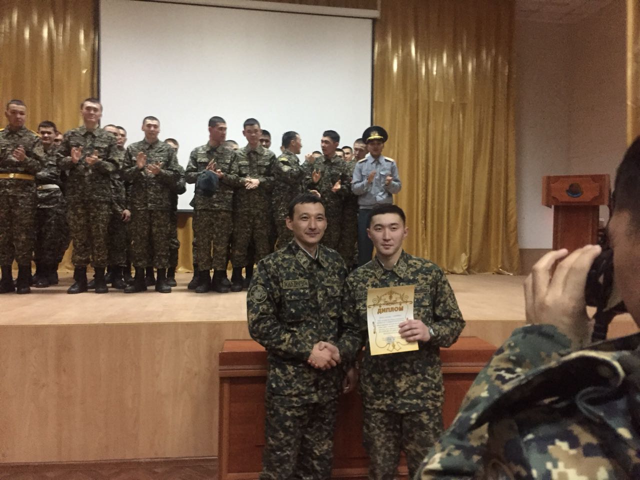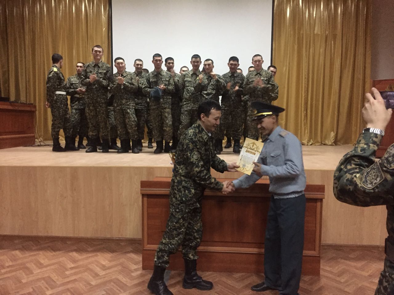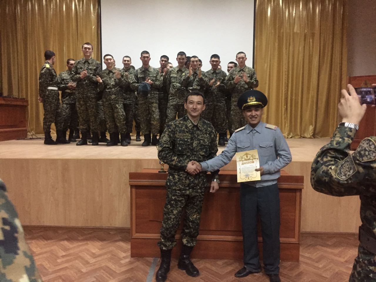В официальной части мероприятия принял участие временно исполняющий обязанности заместителя командира полка, майор Берик Жанулин, который поздравил участников с наступающими праздниками и пожелал успехов в службе.