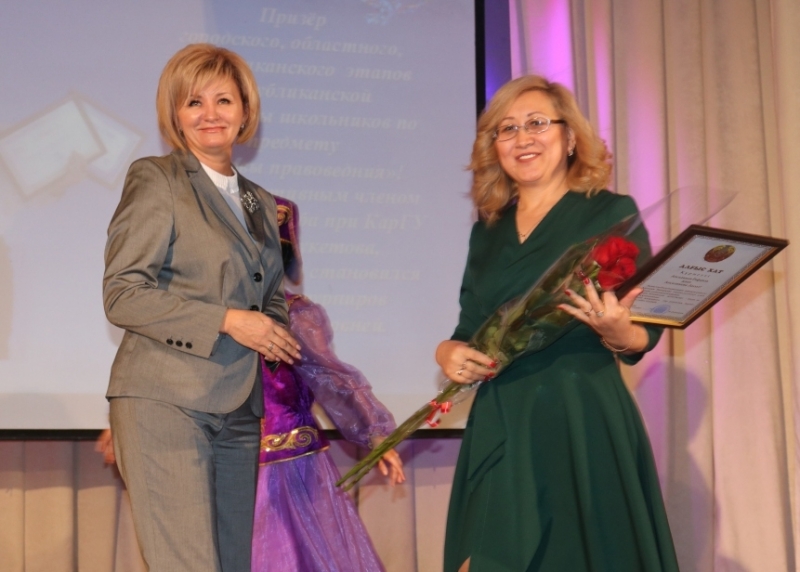 На церемонии И.Ю. Любарская вручила благодарственные письма акима города Караганды Н. Е. Аубакирова родителям учащихся, которые на протяжении последних 4-х лет являются победителями и призёрами предметных олимпиад и интеллектуальных конкурсов различных уровней.