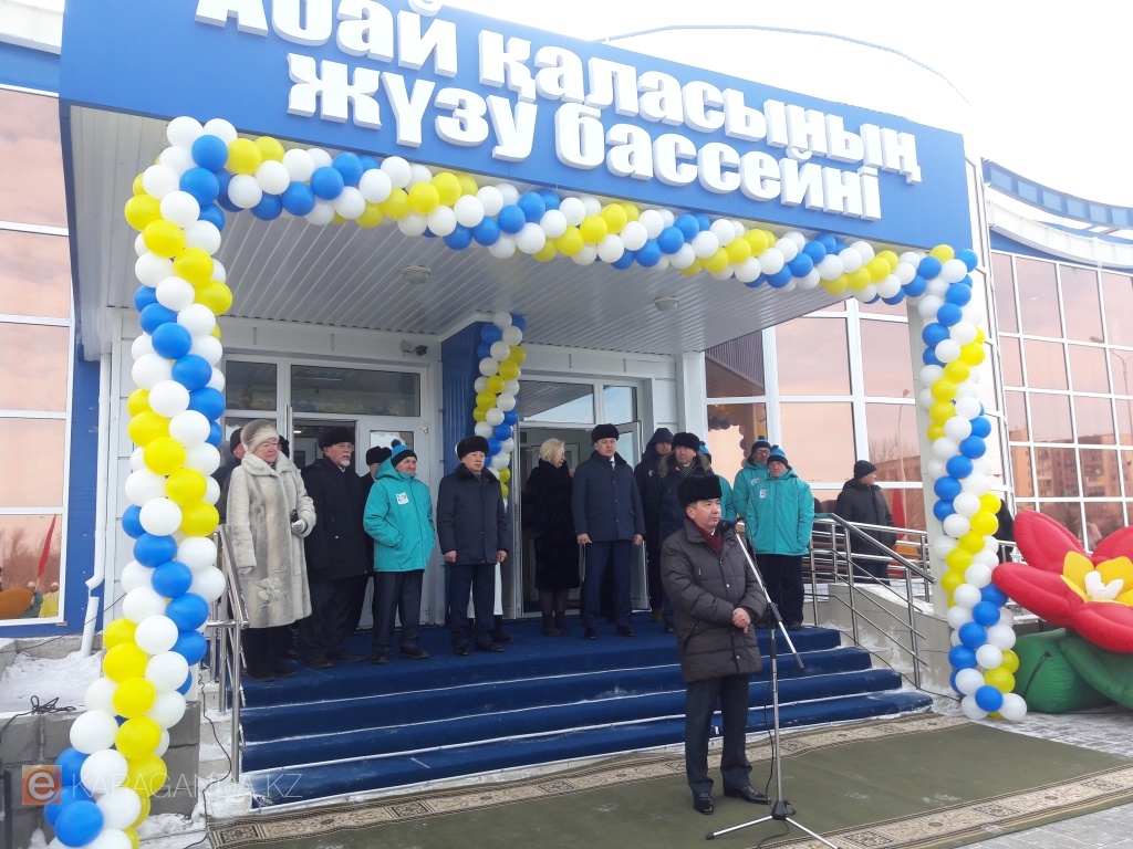 На торжественном открытии заместитель акима Карагандинской области Серик Шайдаров официально передал ключ здания заслуженному гражданину Абая, основателю абайской школы бокса, заслуженному тренеру республики Андрею Райшу. Который в свою очередь отметил, что строительство бассейна теперь Казахстану должно подарить еще одного олимпийского чемпиона по плаванию.