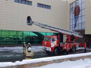 В ходе учений были отработаны поиски людей в здании, подача лафетного ствола из люльки пожарной автолестницы и эвакуация людей с крыши здания.