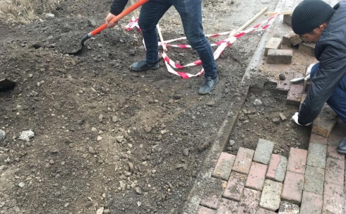 10 апреля по поручению ГУ «Отдел КХ, пассажирского транспорта и автомобильных дорог города Караганды», ремонтная бригада ТОО «Сапа Жол Строй» сделала новую насыпь и заново уложила брусчатку на проблемном участке пешеходной дорожки.