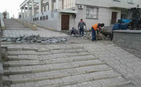 В Караганде ТОО "Караганды Су" приступило к проведению работ по восстановлению покривившейся брусчатки в парке Победы. Ранее планировалось приступить к работам 26 марта, однако погодные условия не позволили восстановить брусчатку раньше.
