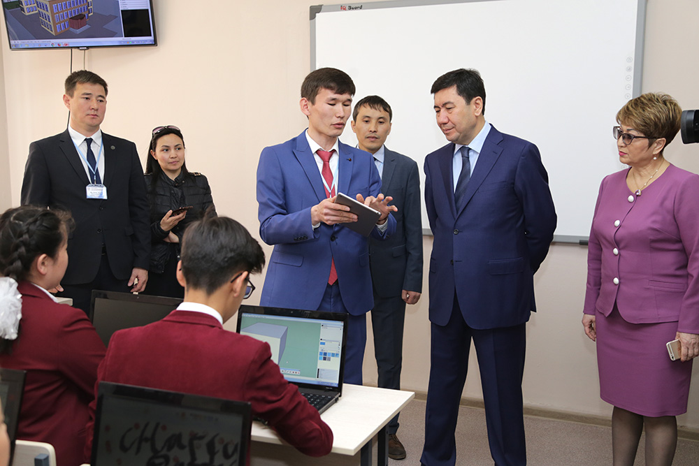Акиму области также показали школьный кабинет робототехники и лабораторию естественных наук.