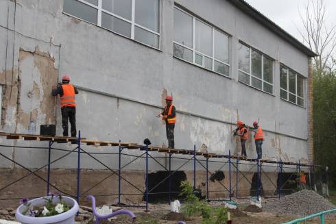 В среднеобразовательной школе №57 ремонтные работы по графику начались 1 июня. Тем не менее, подрядчик пошёл навстречу администрации учебного заведения и выкрасил фасад здания к празднику последнего звонка, который состоялся 25 мая. Однако Ерлан Кошанов обратил внимание на недостаточно качественную работу.