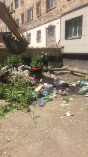 Как удалось выяснить, появление на заднем дворе стихийной свалки – дело рук предпринимателей и самих жителей. На первом этаже с обратной стороны жилого здания располагаются две клиники – одна действующая, другая – строящаяся. Горы мусора были сосредоточены на прилегающих к ним территориях. Во-первых, мусор ранее здесь оставляли люди без определенного места жительства, обосновавшиеся в строящейся клинике. Во-вторых, бытовые отходы из окон верхних этажей выбрасывают сами жители.