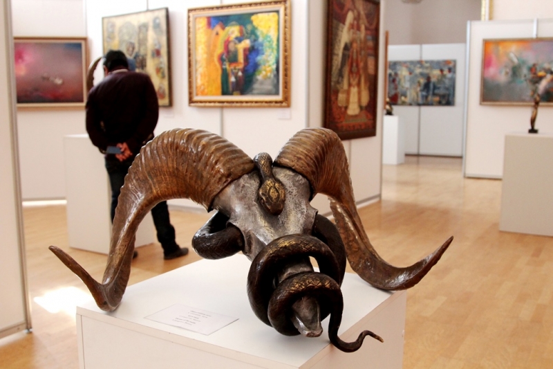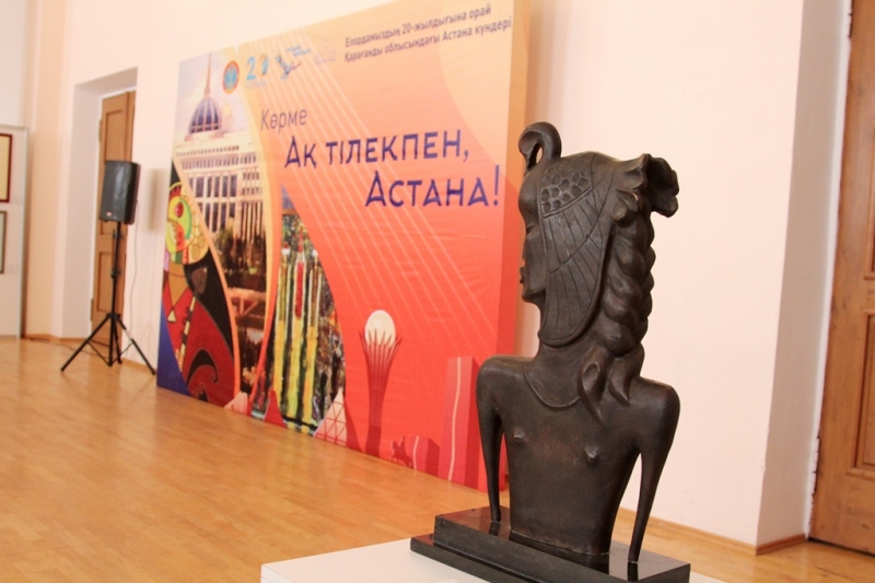 В фойе Дворца культуры горняков развернулась выставка «Ақ тілекпен, Астана!», на которой представлено 100 наиболее ярких работ отечественных художников.