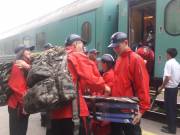 16 июля на перроне железнодорожного вокзала организаторы республиканских военно-патриотических сборов «Айбын» встретили первых участников из Костаная.