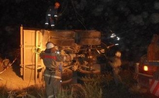 В воскресенье вечером на 1309 километре автотрассы Алматы-Екатеринбург произошло крупное дорожно-транспортное происшествие. Житель Астаны, управляя грузовиком Shaanxi, груженным щебнем, двигаясь в направлении Астаны, выехал на полосу встречного движения и допустил столкновение с рейсовым автобусом Yutong, следовавшим по маршруту Астана-Караганда. При этом не удалось избежать столкновения и легковой автомашине Audi-100, в которой находились четыре человека.