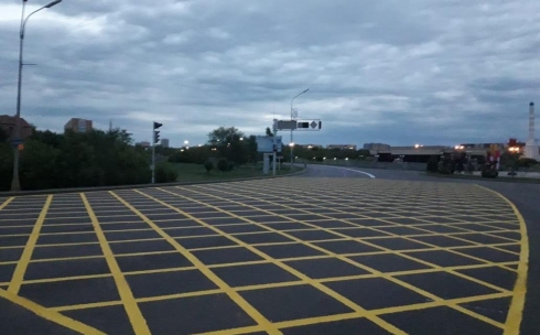 В июле на одном из перекрёстков Караганды появилось нововведение в виде «вафельной» дорожной разметки. Новая разметка была нанесена на Т-образный перекрёстке улицы Университетская и проспект Бухар Жырау.