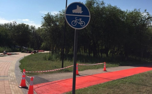 В августе в Центральном парке Караганды появилась новая велосипедная дорожка красного цвета.