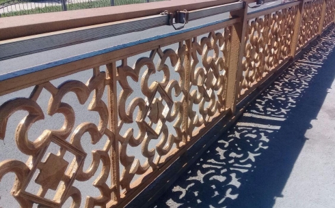 Ко Дню столицы ограждения карагандинских путепроводов перекрасили в золотой цвет.