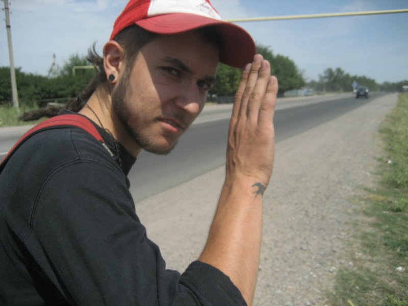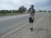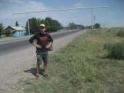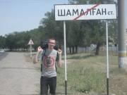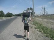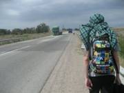 Во всяком случае, это было бы забавно. Даконя сказал, что сам разберется – всё таки человек военный, и отпустил нас с миром. Мы поехали на Алтын Орду. Там надо было найти автобус, идущий до Чемолгана. Нашелся он достаточно быстро – не без помощи местного мужичка в кепке, который отнёсся к нам весьма доброжелательно, узнав, что мы автостоперы. Было удивительно, что на базаре вообще кто-то знает, кто такие автостоперы и чем они занимаются. Доехали быстро. Таким образом, можно было считать, что мы преодолели уже около 50 километров из всего тысячекилометрового пути к полудню. Что было не совсем хорошо. Присели на бордюре перекусить магазинными хычинами с тестом и тестом. Начиналось самое пекло – пот катил градом. Дискутировать о падшем человечестве не было времени, так что я просто повязал рубашку на голову, и мы вышли на трассу. Рубашка честно – не для красоты. Просто у меня кожа быстро обгорает.