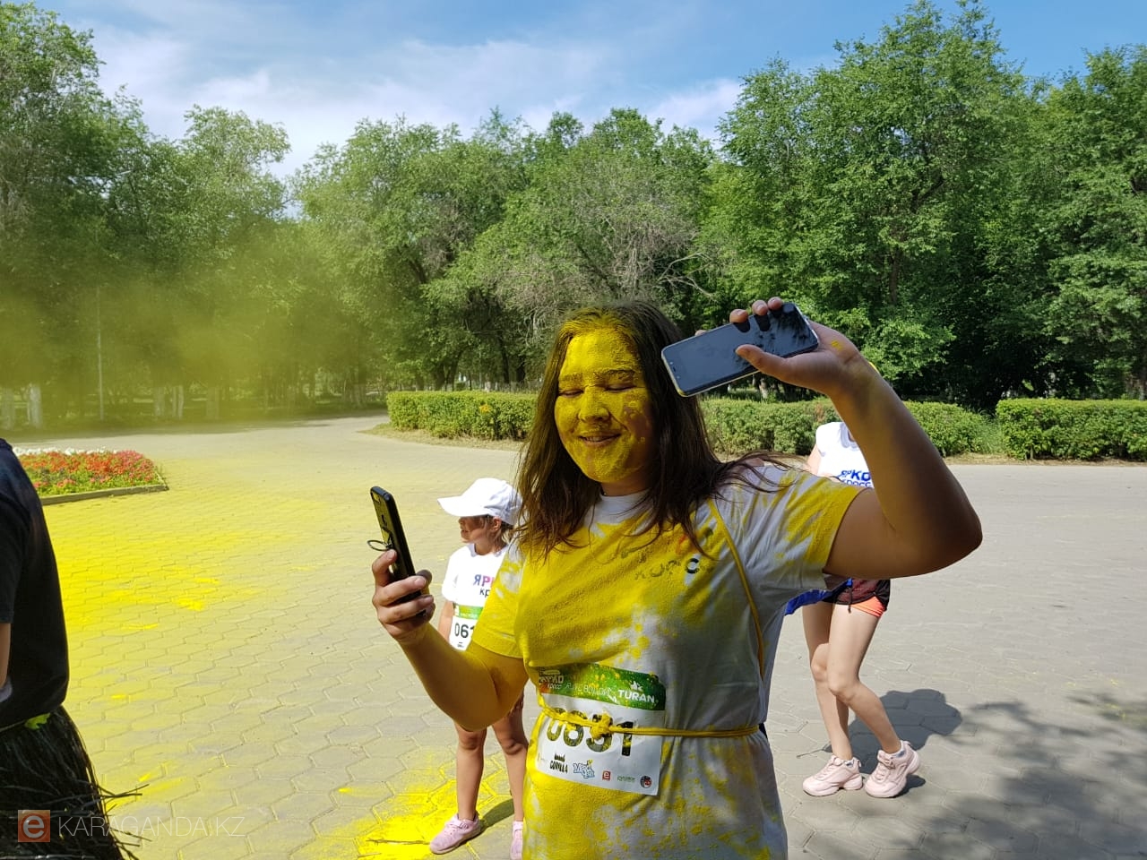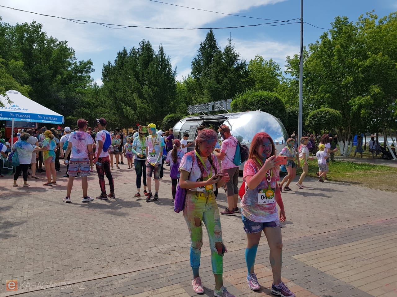 В Центральном парке культуры и отдыха Караганды был составлен маршрут забега - вокруг паркового озера. Организаторы разместили там пять цветных станций, где участников закидывали краской. Всего в шахтёрской столице была израсходована одна тонна касителей.