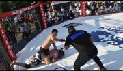 Жоробек Тешебаев победил удушающим приёмом в схватке с алматинцем Мырзой Еркенбековым.