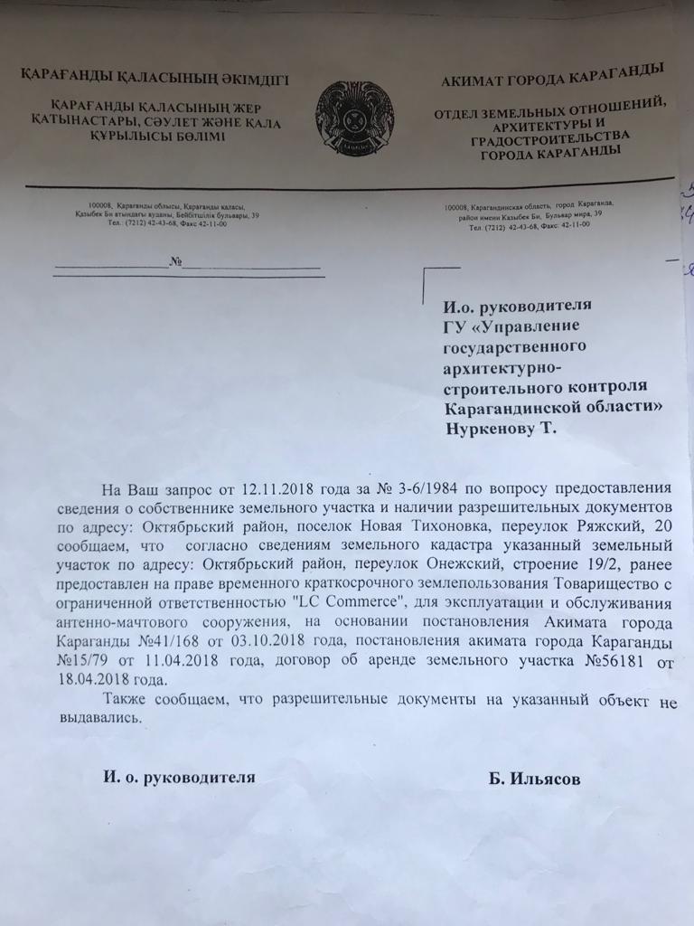 Карагандинцы жалуются на незаконное возведение антенной вышки