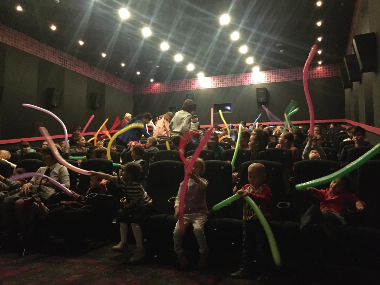 Перед показом фильма организаторы устроили для юных зрителей развлекательную программу с выступлениями аниматоров, сладкими угощениями, играми и конкурсами.