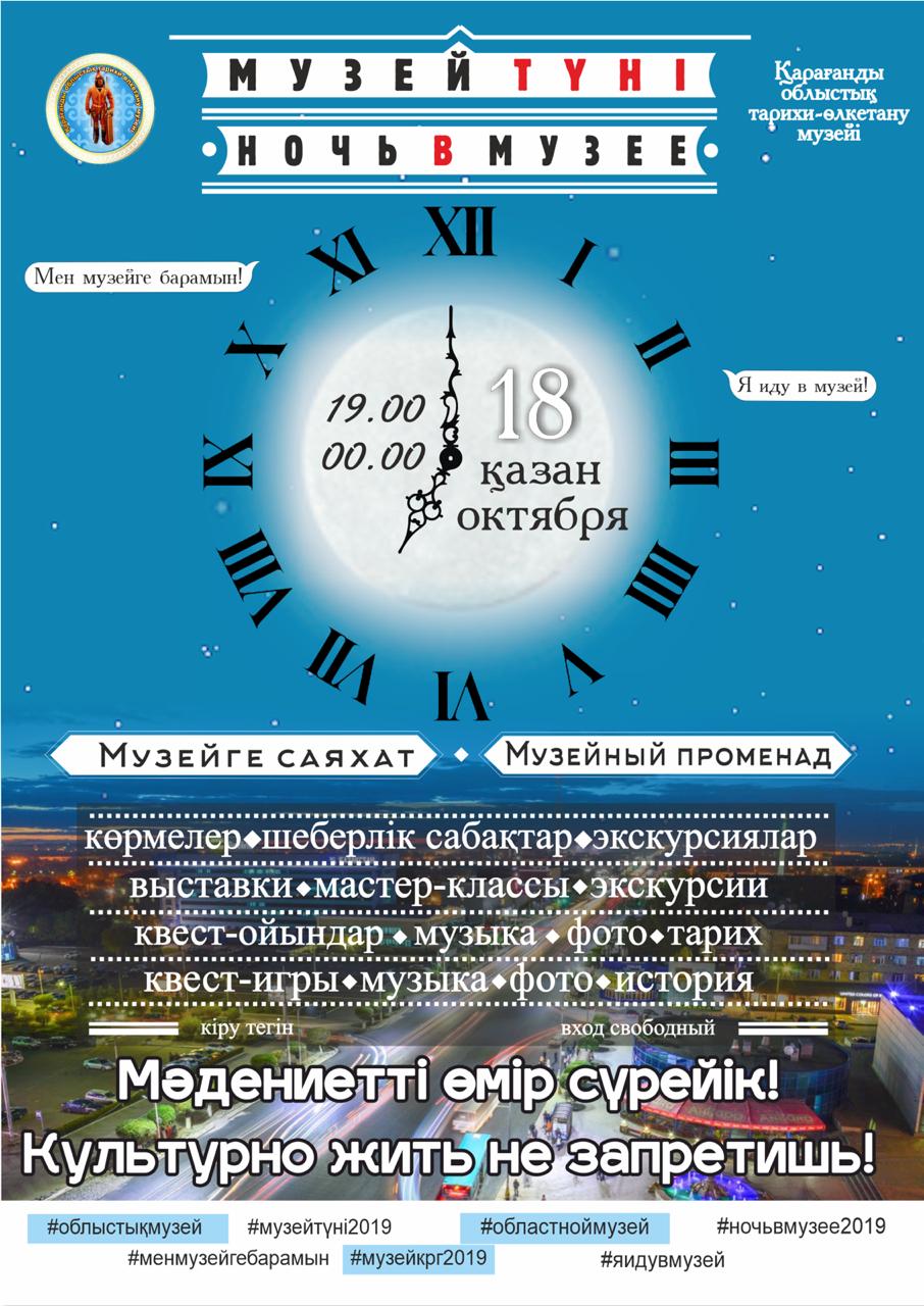 Такую встречу организует карагандинский историко-краеведческий музей в рамках республиканской акции «Парад музеев» - «Музейный променад». «Ночь в музее» состоится 18 октября и продлится с 19.00 до полуночи. Вход – свободный.