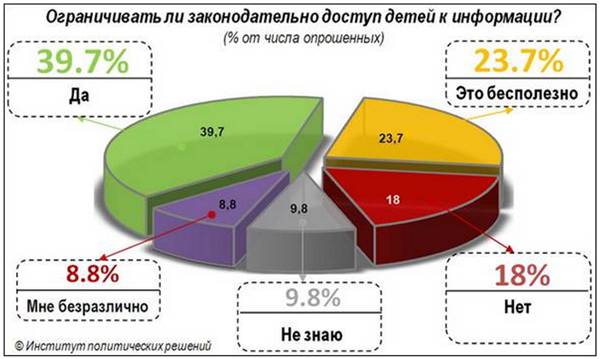 Более трети казахстанцев (39,7%) поддерживают законодательное ограничение доступа к информации. «Это нужное и своевременное решение, способствующее правильному воспитанию детей» - мнение недоминантного большинства.