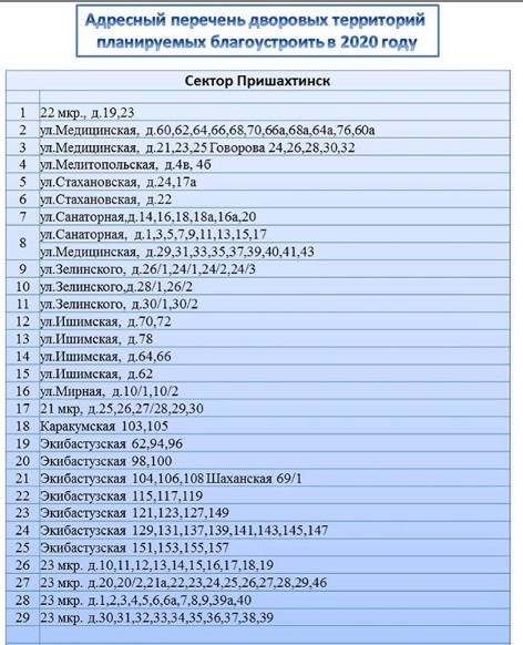 На сегодняшний день опубликован список дворов Октябрьского района, которые будут благоустроены с мая по октябрь 2020 года.