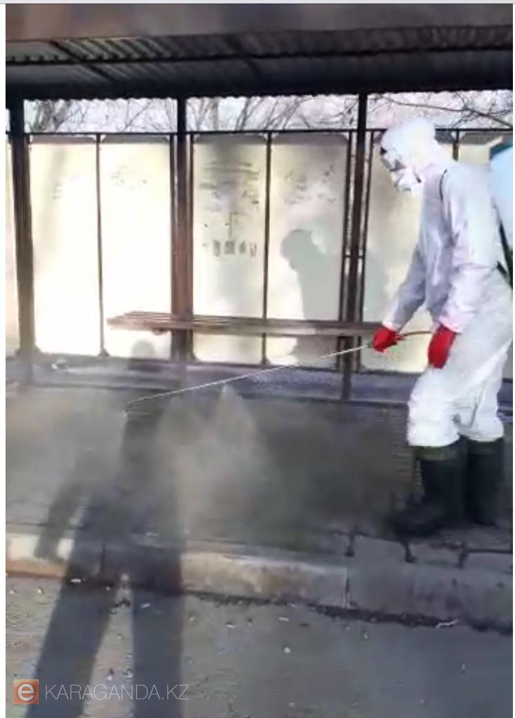 Несколько дней в Караганде ведут работы по дезинфекции остановочных павильонов.