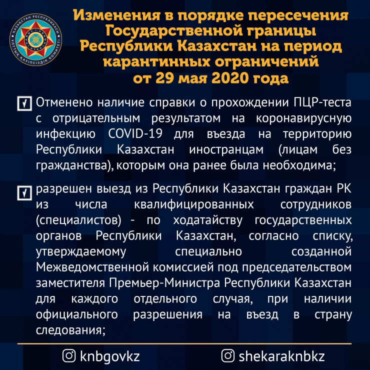 1. Отменено требование справки о прохождении ПЦР-теста с отрицательным результатом на коронавирус для въезда в Казахстан иностранцам.