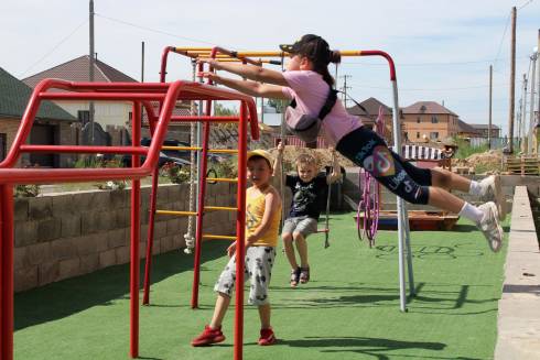 В микрорайоне «Кунгей» Караганды появилась детская площадка. О досуге детворы частного сектора позаботилась индивидуальная предпринимательница Сауле Дуйсембаева. На свои средства она решила обустроить заброшенную территорию рядом со своим домом.