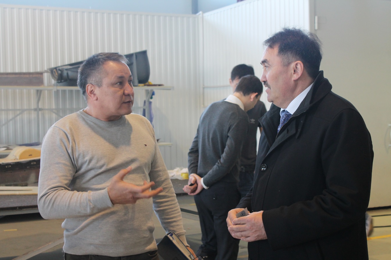 Еще одним объектом посещения стал авиазавод «Казавиаспректр». Предприятие, специализирующееся на выпуске сельскохозяйственных самолетов марки «Фермер-2» и «Фермер-500» обрело второе дыхание. Главе города показали, как сегодня обстоят дела на заводе. Отметим, что 12 марта 2014 года было подписано Сублицензионное соглашение между ТОО «КазАвиаСПЕКТР» и ООО «Фирма «МВЕН», касательно организации производства специализированного сельскохозяйственного самолета «МВЕН-2 «Фермер» на карагандинской производственной площадке. Сейчас здесь полным ходом идут работы по изготовлению деталей на воздушные судна. Напомним, что в феврале текущего года на производственном цехе предприятия установлена видеокамера для отслеживания производственного процесса в режиме онлайн. Сегодня авиазавод начал сотрудничество с рядом зарубежных компаний. Кроме того был подписан меморандум между ТОО «КазАвиаСПЕКТР» и ФГУП «СибНИА им. С.А. Чаплыгина», согласно которого стороны будут совместно продвигать работу по реализации проекта ремоторизации самолетов Ан-2, ориентированных на обновление парка воздушных судов задействованных в различных сферах применения, стимулирование развития авиационного производства в Республике Казахстан. В настоящее время на заводе задействовано 44 человека, которые заняты переоборудованием и перетяжкой 4 самолетов модели АН-2. Кроме того, параллельно продолжается работа руководства ТОО «КазАвиаСПЕКТР» с АО «НК «Казахстан Инжиниринг» по уточнению и корректировке деталей договора по сборке беспилотных летательных самолетов.