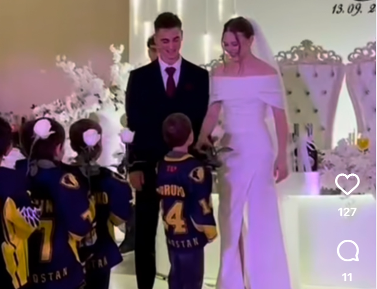 Юные хоккеисты растрогали Казнет поздравлением на свадьбе тренера