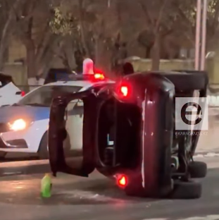 В Караганде перевернулся автомобиль после столкновения По предварительным данным, в результате столкновения по инерции удара автомобиль Nissan опрокинулся на бок.К счастью, в аварии никто не пострадал. Оба транспортных средства получили механиче...