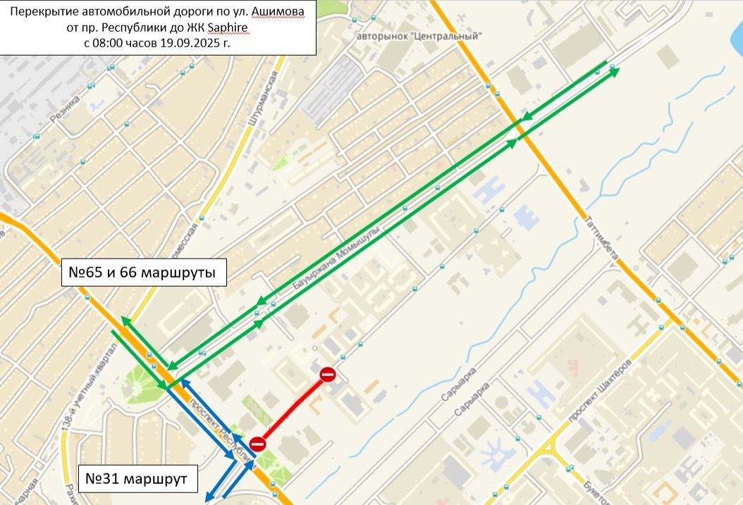 В городском акимате сообщили, что мера связана с проведением работ по среднему ремонту дорожного полотна.Движение общественного транспорта на данном участке будет организовано в соответствии...