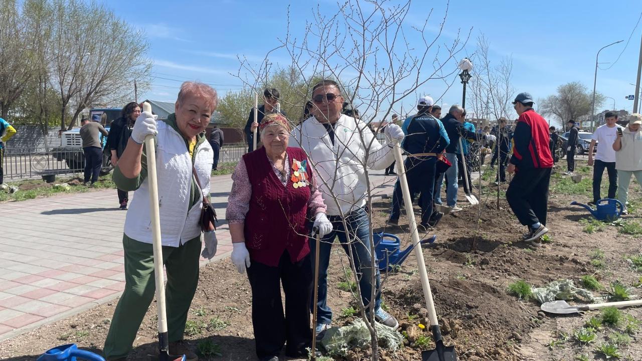 С подачи юной участницы экологического субботника Толганай некоторые деревья получили свои имена. Участие в посадке деревьев в Шахтинске принял аким области Ерма...