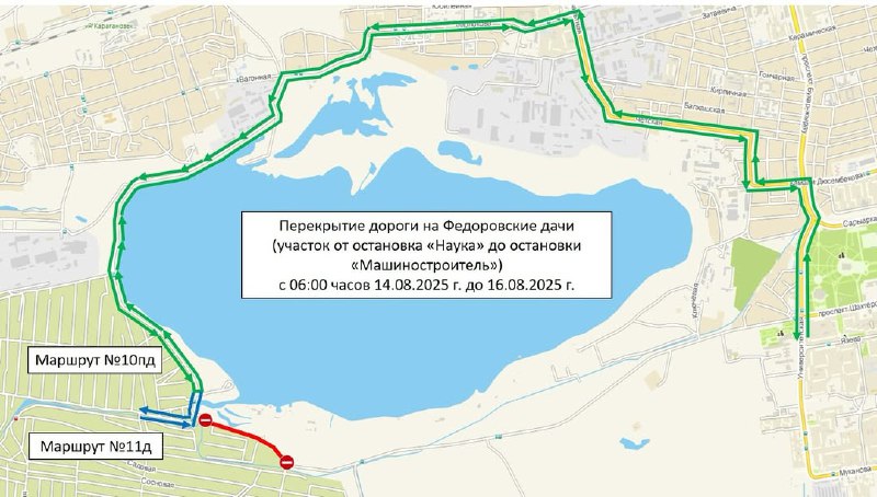 На данном отрезке будут вестись ремонтные работы, в связи с чем движение автотранспорта будет ограничено до 23 августа. В этот период дачные автобусы № 10 ПД и № 11 Д будут курсировать по вр...