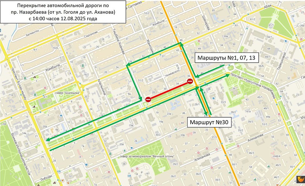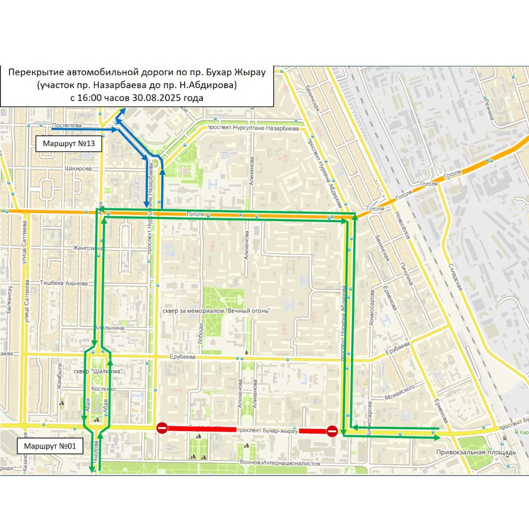 30 августа в Караганде проспект Бухар жырау перекроют после 14 часов