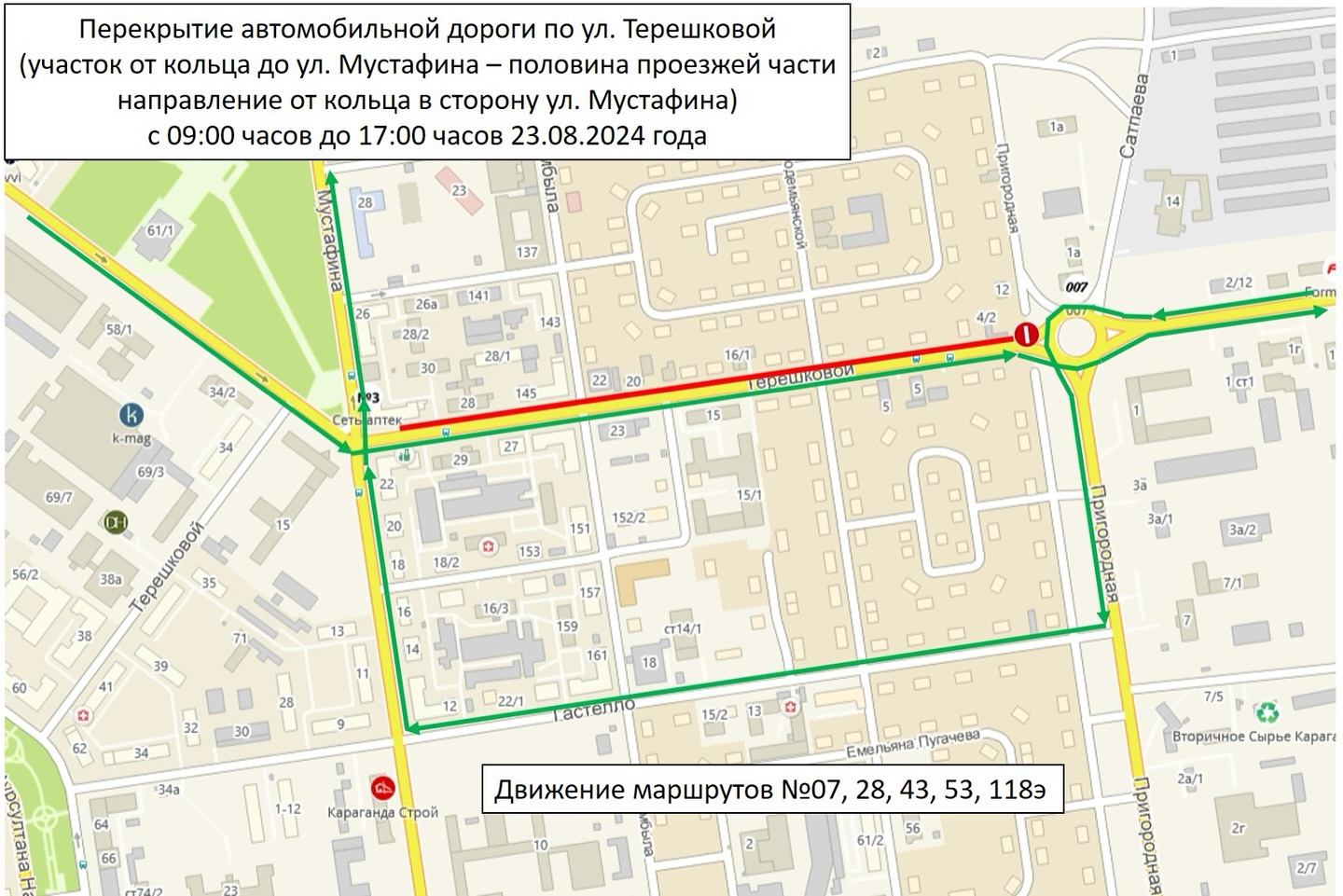 В Караганде на улице Терешковой временно ограничат движение транспорта
