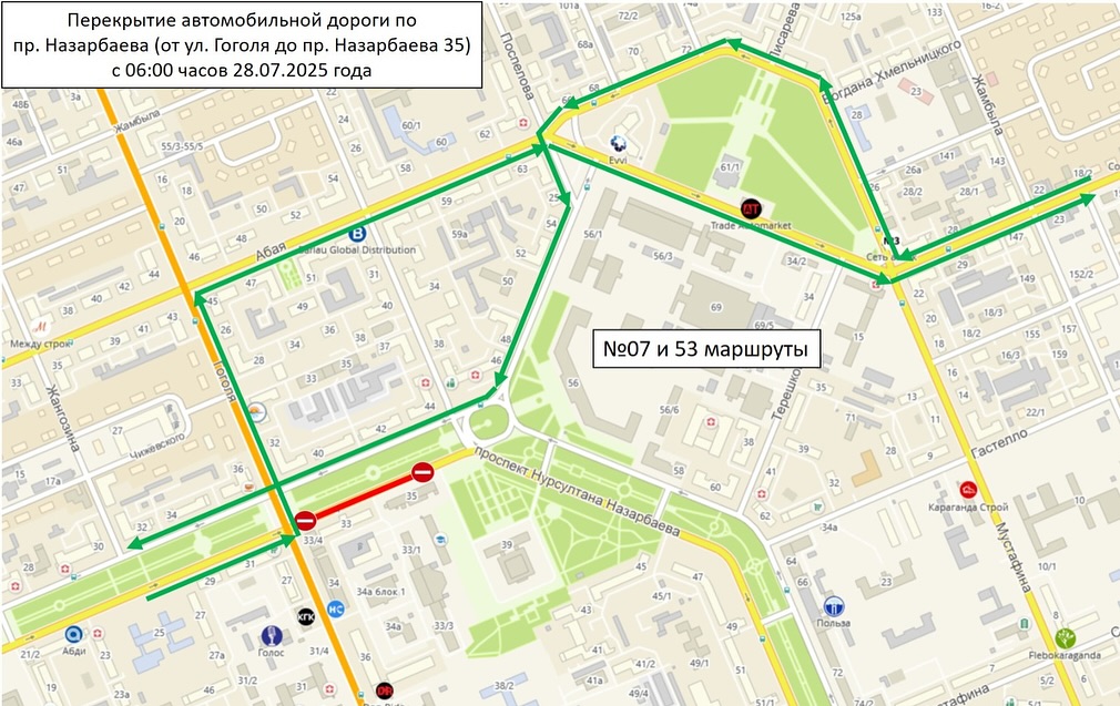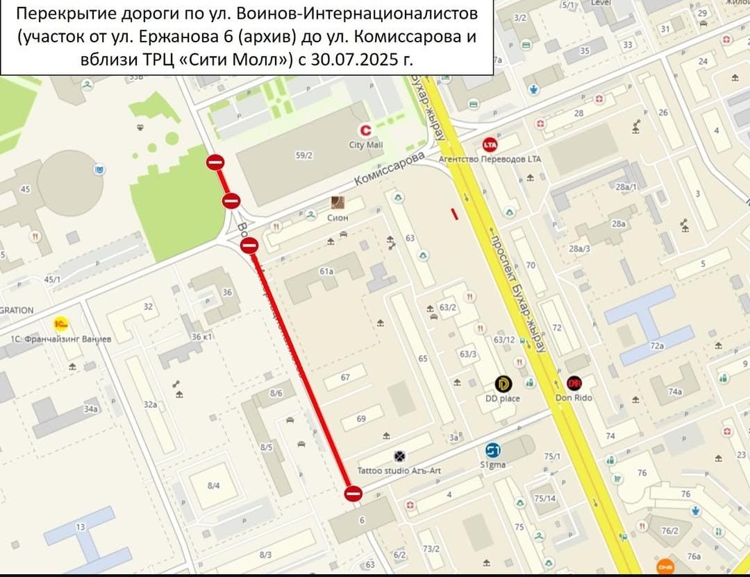 В Караганде с 30 июля закроют участок улицы Воинов‑Интернационалистов