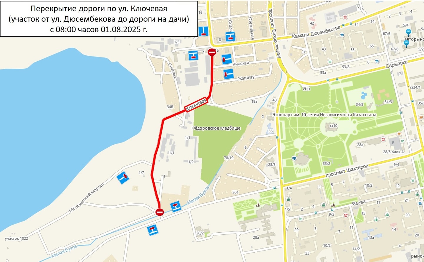 В Караганде с 1 августа участок дороги на улице Ключевая будет временно недоступен