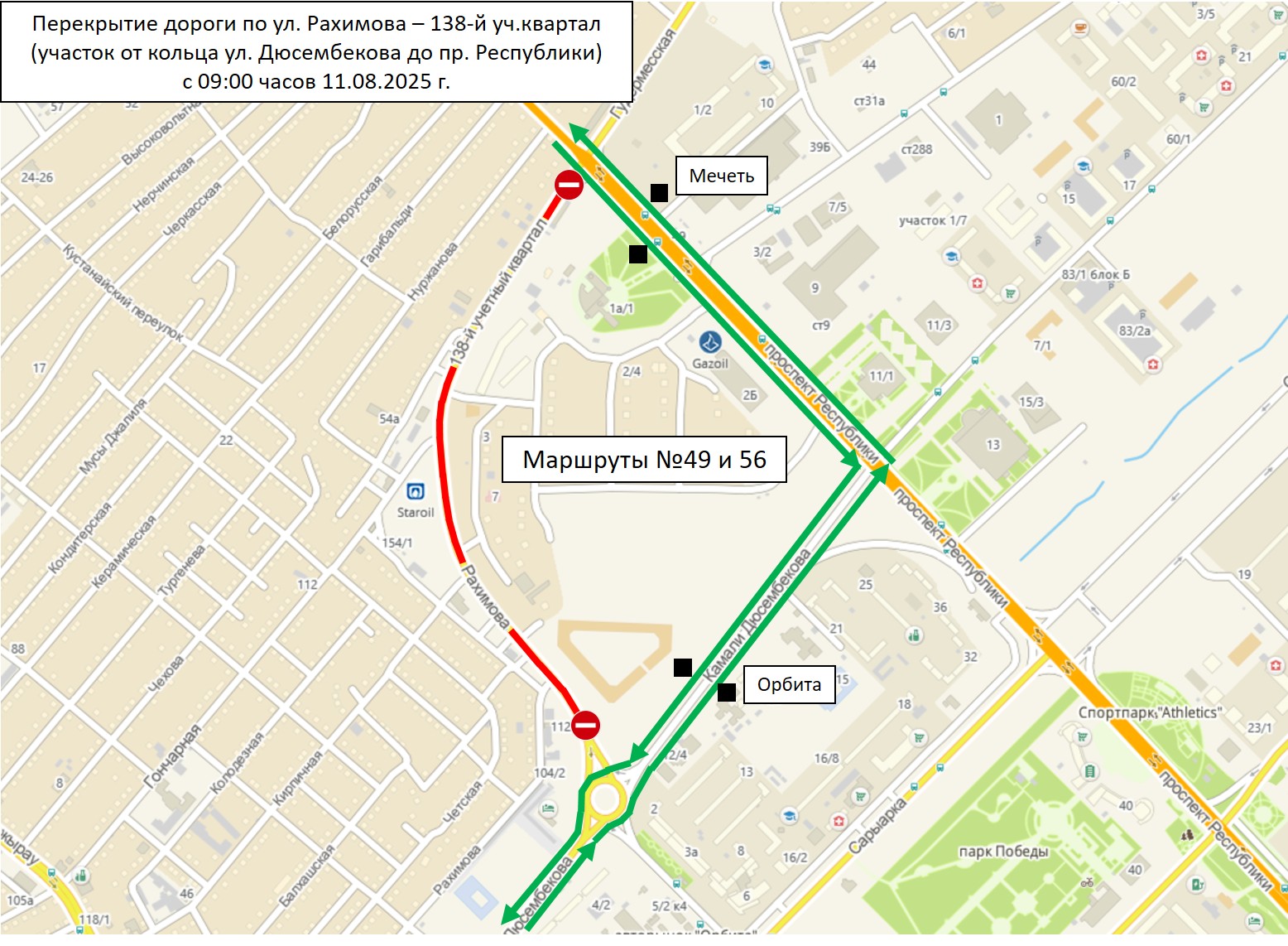 На этот раз недоступным для проезда станет отрезок от улицы Дюсембекова до поворота на дачи. Специалисты приступят к укладке асфальтобетонного покрытия и приведению дорожного полотна в норма...