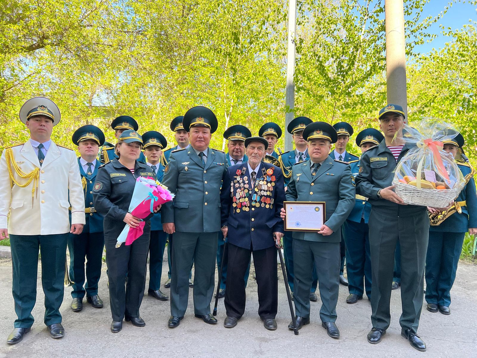 В мероприятии приняли участие командир бригады полковник Максат Кыргызбаев, заместитель командира бригады подполковник Максат Мукаев, офицеры и военный оркестр. Они посетили ветерана на дому...