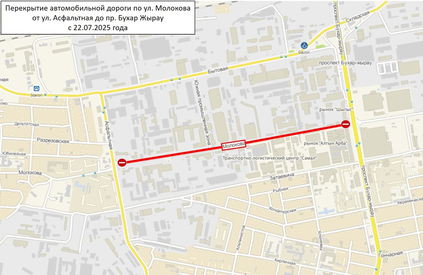 Как сообщили в ГУ «Отдел ЖКХ, пассажирского транспорта и автомобильных дорог города Караганды», перекрытие связано с очередным этапом капитального ремонта участка от Фёдоровского путепровода...